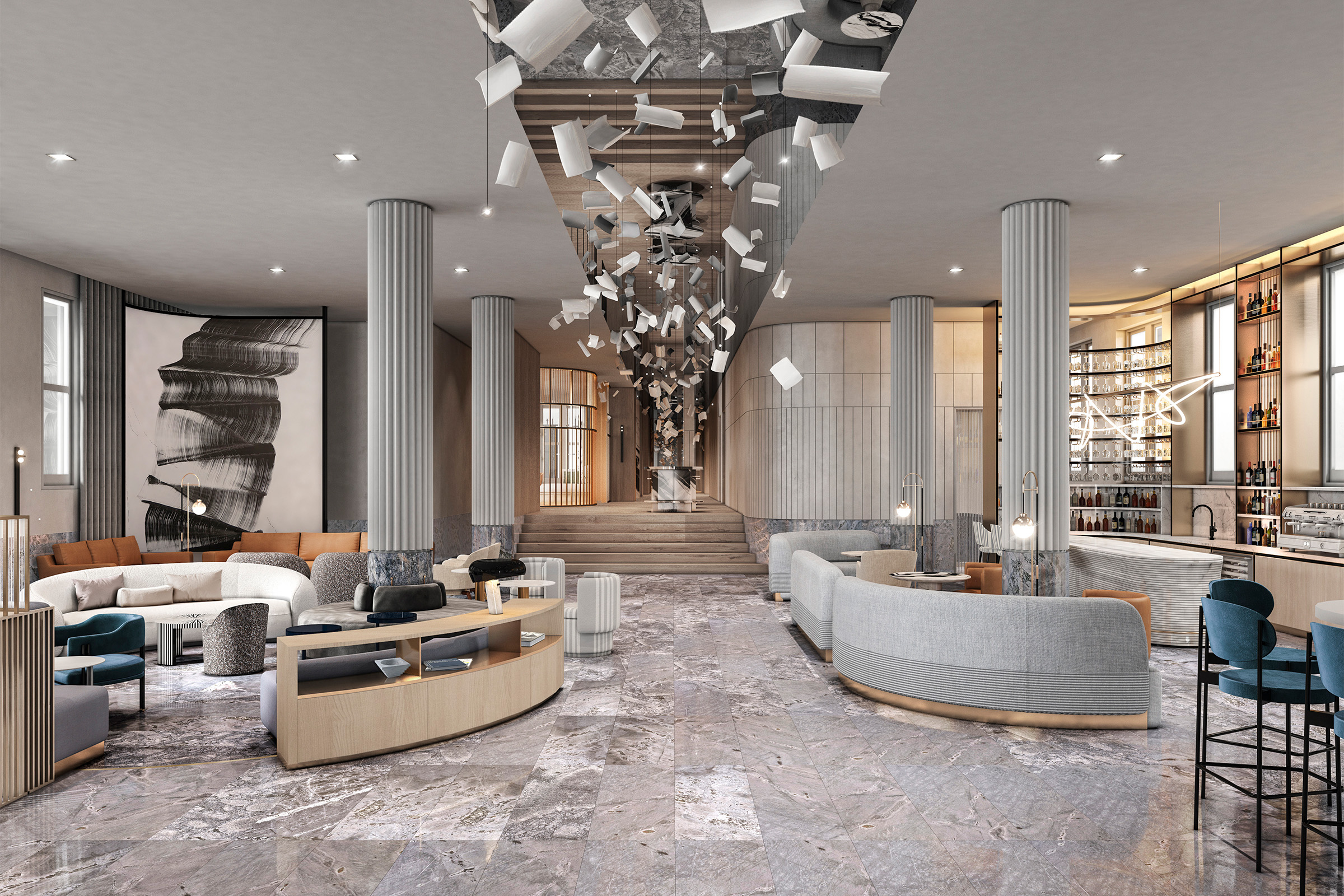 Collaborating closely with Conran + Partners, Multiple are in the process of developing a highly functional wayfinding and signage system for the 14 storey hotel. The design language combines elements of the building’s rich printing history of solid metal print rollers, inky letterpress plates, and delicate sheets of paper; integrating seamlessly into the elegant interior design.