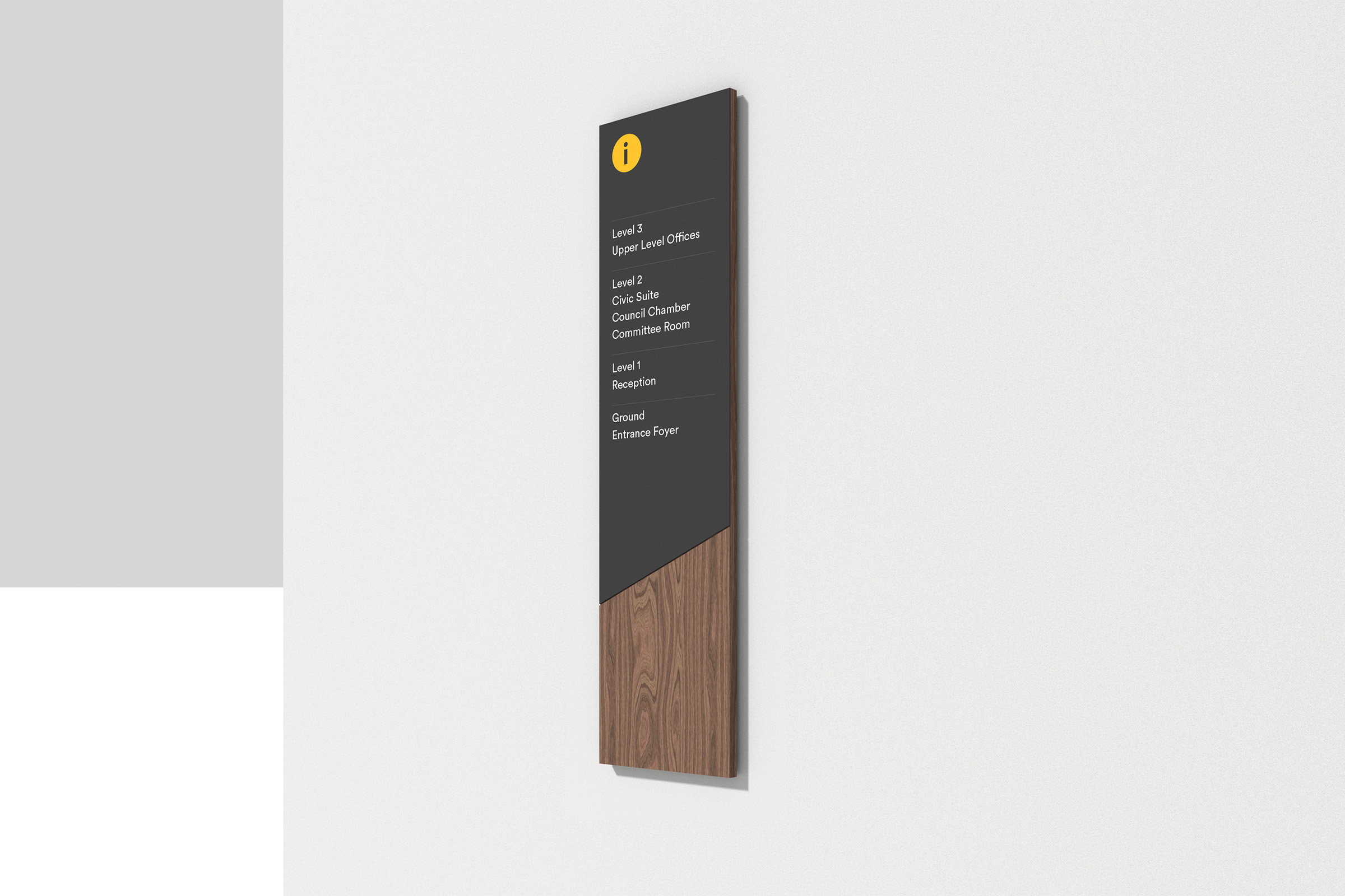 A broad signage guidelines document was developed to deliver a cohesive and adaptable signage framework that is highly functional for current and future signage objectives in an easy-to-navigate format. The document outlines the look and feel of each sign, both internal and external, describing the need to decommission, de-clutter and repurpose existing signage within the council, as well as detailing principles relating to allocation, construction, regulations and graphics.